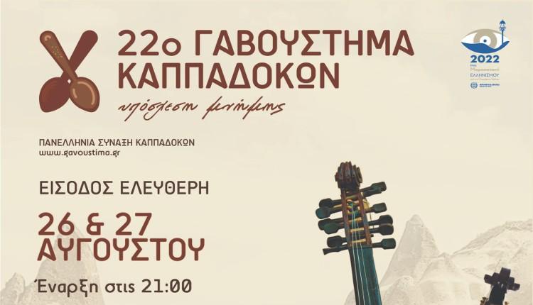 Στις 26 και 27 Αυγούστου στις 9.00 μ.μ. στο θέατρο της Φαραγγιανής Κεφάλας στα Φαραγγιανά θα πραγματοποιηθεί το πρώτο μέρος των εκδηλώσεων του 22ου Γαβουστήματος. Τραγούδια και χοροί της Καππαδοκίας με τη συμμετοχή χορευτικών συγκροτημάτων από όλη την Ελλάδα υπόσχονται ένα ταξίδι μνήμης στο χρόνο. Ακόμα, θα αφουγκραστούμε την αλληλεπίδραση των δύο πολιτισμών, Καππαδοκίας και Κρήτης και τη μεταξύ τους ώσμωση, αλληλεπηρεασμού και των κοινών στοιχείων που υπήρξαν. Ταυτόχρονα, θα υπάρξει και έκθεση φωτογραφίας της Αγγελικής Κίτσου Μαγαράκης με σπίτια Ελλήνων Καππαδοκών. Στις 28 Αυγούστου στο Αποίνι στις 5.00 μ.μ. στην «Παναγία τη Βελουλιανή (έτους 1260)» θα τελεστεί επιμνημόσυνη δέηση και στη συνέχεια επιστημονική εσπερίδα με θέμα το Μικρασιατικό Ελληνισμό, στην οποία θα λάβουν μέρος διακεκριμένοι ομιλητές από όλη τη χώρα. Ευελπιστούμε, το 22ο Γαβούστημα να αποτελέσει την αφετηρία συνεργασίας όλων των προσφυγικών συλλόγων της Κρήτης και με τη στήριξη της Περιφέρειας Κρήτης και των επιστημονικών φορέων να κρατήσουμε άσβεστη την ιστορική μνήμη. Επιπρόσθετα, το συλλογικό τραύμα της Μικρασιατικής Καταστροφής να αναδειχθεί ως το γεγονός εκείνο, από το οποίο θα αντλήσουμε τα κατάλληλα συμπεράσματα για να πορευτούμε ως Έλληνες μελλοντικά.