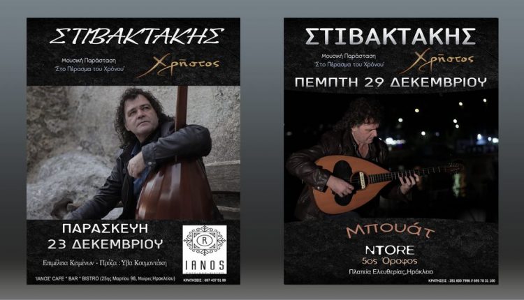 Την Παρασκευή 23 Δεκεμβρίου στη τοποθεσία ΙANOS cafe στο Ηράκλειο θα πραγματοποιηθεί η πρώτη παράσταση "Στο πέρασμα του χρόνου" με τον Χρήστο Στιβακτάκη, ενώ η δεύτερη θα γίνει στο ΝΤΟRE στον 5ο όροφο, δίπλα απο την πλατεία Ελευθερίας στις 29 Δεκεμβρίου.