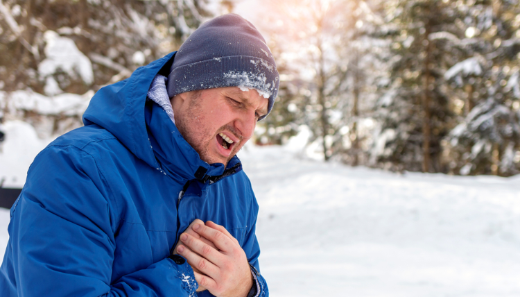 Η έκθεση στο ψύχος και ιδιαίτερα όταν συνδυάζεται με σωματική καταπόνηση αυξάνουν το καρδιακό έργο και μπορούν να προκαλέσουν συμπτώματα καρδιακής ισχαιμίας όπως θωρακικό πόνο αλλά ακόμα και έμφραγμα του μυοκαρδίου. Επίσης ο οργανισμός για να προστατευτεί από το κρύο και να μειώσει τις απώλειες θερμότητας προκαλεί αγγειόσπασμο με αποτέλεσμα να αυξάνονται οι αγγειακές αντιστάσεις αλλά και η αρτηριακή πίεση. Ο αγγειόσπασμος αυτός πέραν της αύξησης της αρτηριακής πίεσης με τις δυσμενείς επιδράσεις στην ίδια την καρδιά μπορεί να «επεκταθεί» και στα αγγεία που δίνουν αίμα στην καρδιά επιδεινώνοντας προϋπάρχουσες στενώσεις των αγγείων σε ασθενείς με καρδιολογικά προβλήματα.