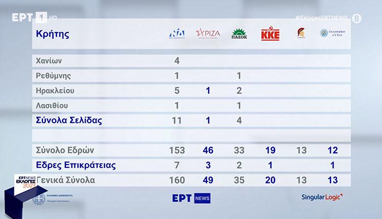 Οι πρώτες εκτιμήσεις για τις έδρες στην Κρήτη είναι οι εξής: