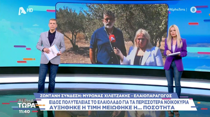 Απλησίαστη η τιμή του ελαιόλαδου – Ξεπέρασε τα 10€ (VIDEO) Αγροτικά iraklionews.gr 21/08/2023 12:05 Share it! FacebookTwitter Οι παραγωγοί, οι καταναλωτές και οι συνδικαλιστές των αγροτών μιλούν στην κάμερα του AlphaTV Απλησίαστη η τιμή του ελαιόλαδου – Ξεπέρασε τα 10€ Ακολουθήστε το Iraklionews σε Google News και Facebook Share it! FacebookTwitter