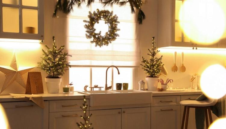 Χριστουγεννιάτικη διακόσμηση παράθυρου κουζίνας