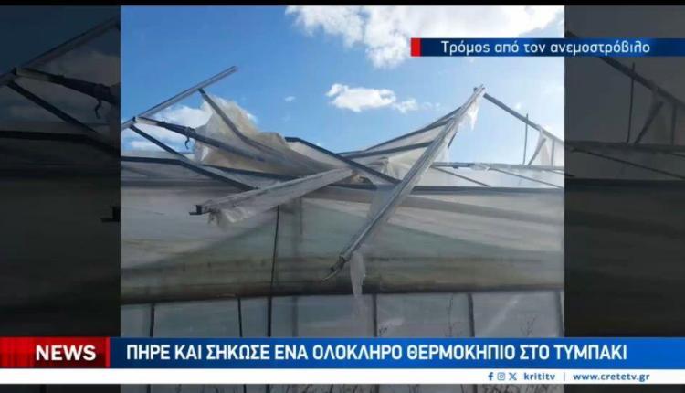 Τρομακτικό ήταν το πέρασμα ανεμοστρόβιλου που σάρωσε εν ριπή οφθαλμού τμήμα θερμοκήπιου στο Τυμπάκι κατά τη διάρκεια της χθεσινής πρώτης ισχυρής βροχής στα νότια παράλια και στην ενδοχώρα του νομού.