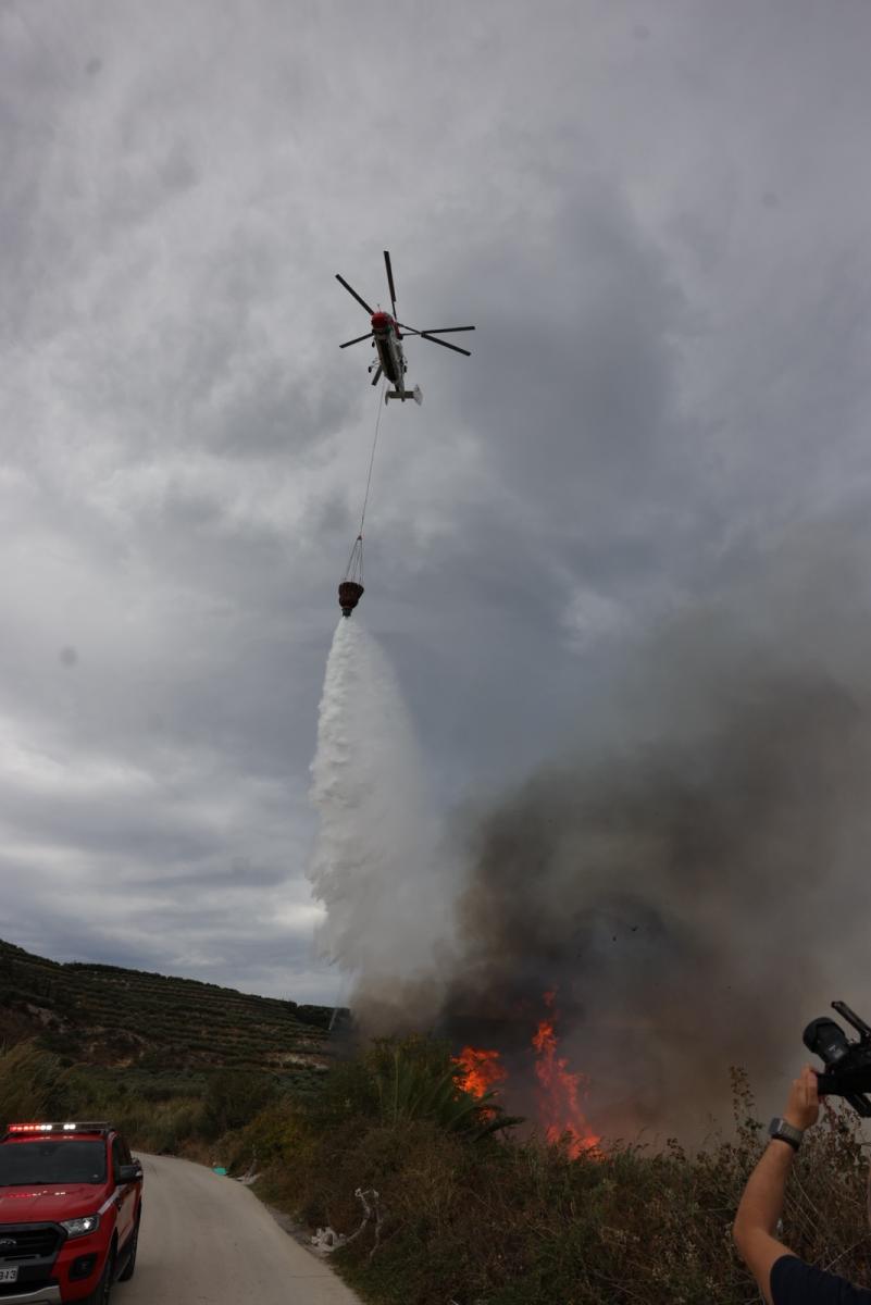 Η επιχείρηση συνεχίζεται με στόχο να περιοριστεί η εξάπλωση της φωτιάς και να τεθεί υπό έλεγχο πριν πάρει μεγαλύτερες διαστάσεις.