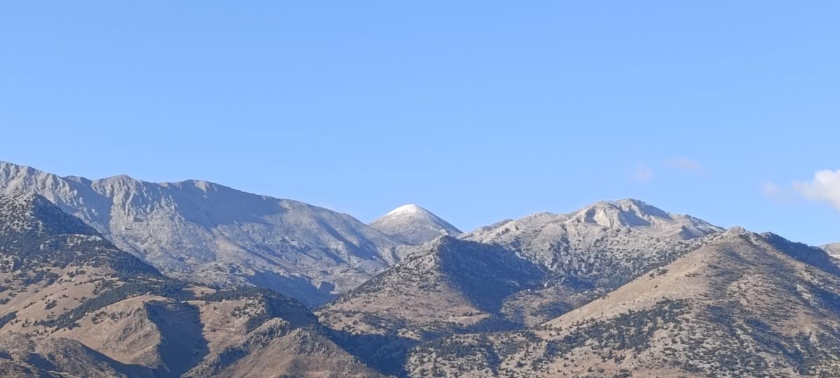 Η κορυφή «Γριά Σωρός» ντύθηκε στα λευκά, χαρίζοντας εντυπωσιακό χειμωνιάτικο σκηνικό πάνω από τους Αγίους Πάντες Αποκορώνου