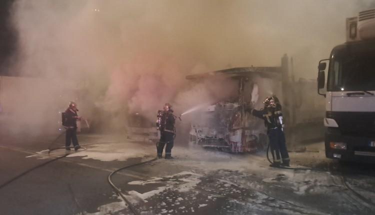 Δέκα πυροσβέστες με τέσσερα οχήματα έδωσαν μάχη με τις φλόγες. Οι νταλίκες υπέστησαν σοβαρές ζημιές, χωρίς τραυματισμούς