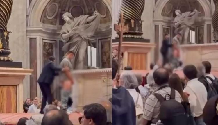Το περιστατικό συνέβη γύρω στις 9:30 το πρωί και καταγράφηκε σε βίντεο που δημοσίευσε η ιταλική εφημερίδα Il Tempo. Ο νεαρός άνδρας φέρεται να ενήργησε απροειδοποίητα, προκαλώντας αναστάτωση μέσα στον ναό, με αρκετούς να πιστεύουν αρχικά ότι επρόκειτο για κάποιον διαμαρτυρόμενο ή ψυχικά διαταραγμένο.