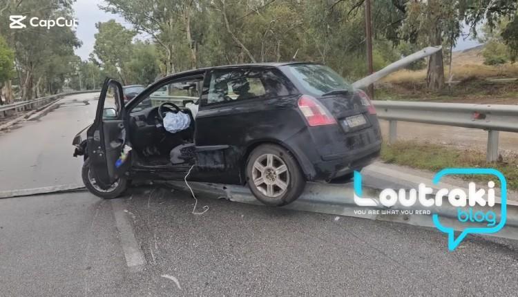 Το όχημα εξετράπη λόγω ολισθηρότητας κοντά στον Ισθμό, με τη μεταλλική μπάρα να τρυπά το αμάξι — από θαύμα δεν υπήρξαν τραυματισμοί