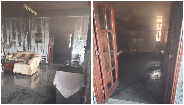 Οι εικόνες από το σημείο αποτυπώνουν τη ζημιά που υπέστη το κατάλυμα, με εμφανή τα ίχνη της φωτιάς στον χώρο όπου βρίσκονταν οι φιάλες.