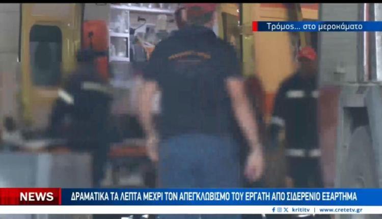 Επιχείρηση σοκ: Προσπαθούν να να τον απεγκλωβίσουν από μηχάνημα σε εργοστάσιο στο Ηράκλειο