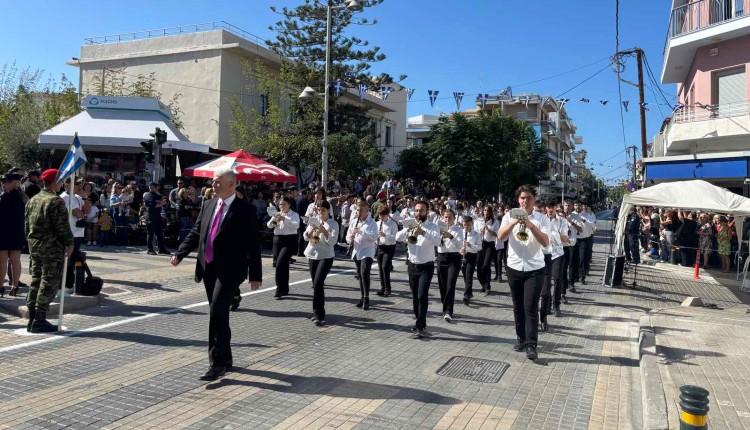 Η Δημοτική Φιλαρμονική Ρεθύμνης έδωσε τον ρυθμό, συνοδεύοντας τα στρατιωτικά αγήματα, τα σχολεία και τους πολιτιστικούς συλλόγους, που παρέλασαν με περηφάνια, κρατώντας ψηλά τη γαλανόλευκη.