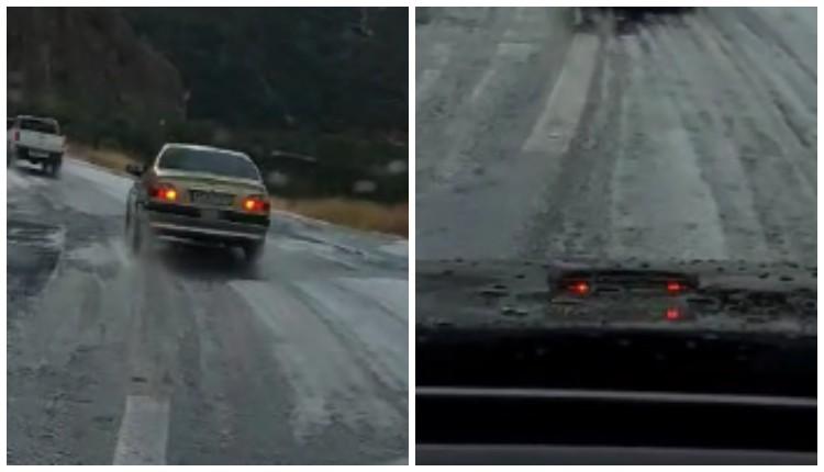 Το χαλάζι κάλυψε το οδόστρωμα, καθιστώντας το ιδιαίτερα ολισθηρό.