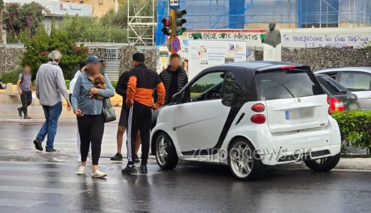 Λαχτάρησαν πεζοί και οδηγοί στο κέντρο των Χανίων, όταν ένα Smart μπήκε ανάποδα με ταχύτητα και προσέκρουσε σε διαχωριστική νησίδα