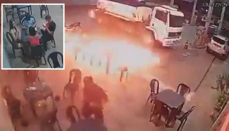 Ένας άνδρας και οι φίλοι του βρέθηκαν ένα βήμα πριν το θάνατο, όταν ένας άναψε τσιγάρο και προκάλεσε φωτιά σε βενζινάδικο, στη Βραζιλία.