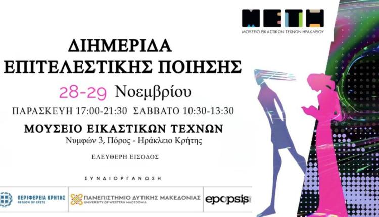 Διημερίδα Επιτελεστικής Ποίησης αφιερωμένη στον Δημοσθένη Αγραφιώτη θα πραγματοποιηθεί στις 28-29 Νοεμβρίου 2025 στο Μουσείο Εικαστικών Τεχνών (Νυμφών 3, Πόρος, Ηράκλειο Κρήτης). Το πρόγραμμα περιλαμβάνει ομιλίες, εισηγήσεις, performance poetry events, spoken word & slam poetry, προβολές video-ποιημάτων, αφιερώματα, ανοιχτή συζήτηση και εργαστήρι ποίησης.