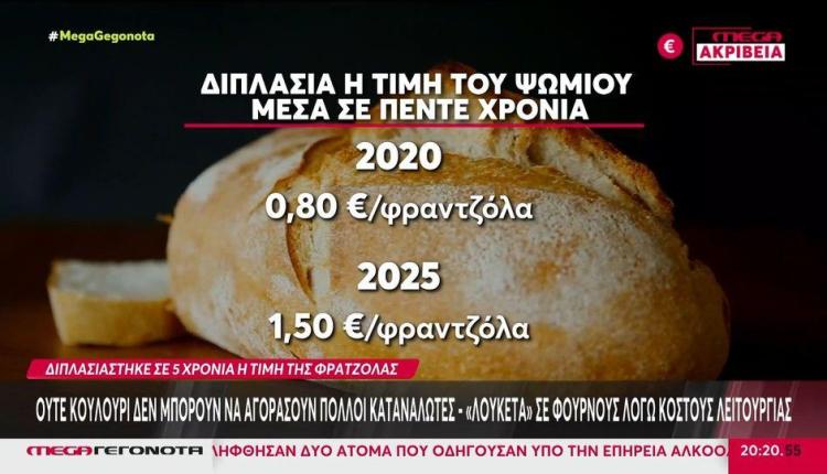 Η τιμή του ψωμιού που μπαίνει σε κάθε τραπέζι, έχει διπλασιαστεί την πενταετία 2020 – 2025 και σε συνδυασμό με τις ανατιμήσεις στο κρέας και τα γαλακτοκομικά προϊόντα, ο μέσος εργαζόμενος πλέον δυσκολεύεται ακόμη και για να αγοράσει βασικά προϊόντα.