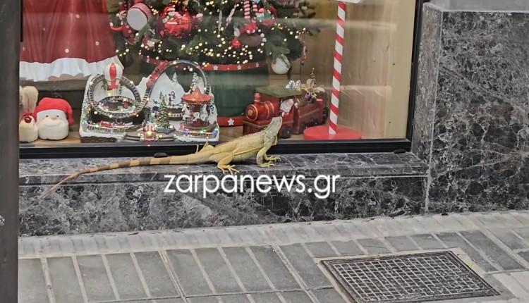 Ένα τεράστιο ιγκουάνα εμφανίστηκε το μεσημέρι της Τετάρτης στην οδό Μπουνιαλή στα Χανιά, αφήνοντας άφωνους τους περαστικούς που το είδαν να κινείται ανάμεσα στα καταστήματα