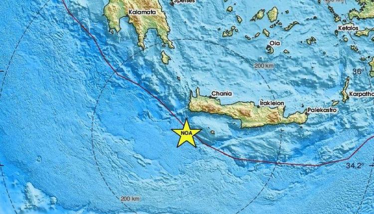 Το ακριβές επίκεντρο τη δόνησης εντοπίζεται στα 51 χλμ. νότια της Παλαιόχωρας Χανίων.