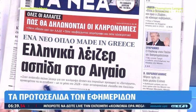 Τα πρωτοσέλιδα των εφημερίδων σήμερα