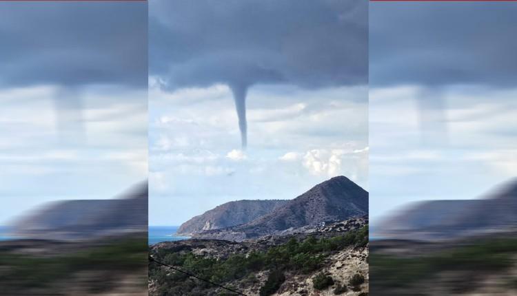 Από τη θάλασσα υψώθηκε ένας καλοσχηματισμένος υδροστρόβιλος, διαγράφοντας για αρκετά λεπτά μια εντυπωσιακή κάθετη στήλη αέρα που ανέβαινε έως τη βάση των νεφών.