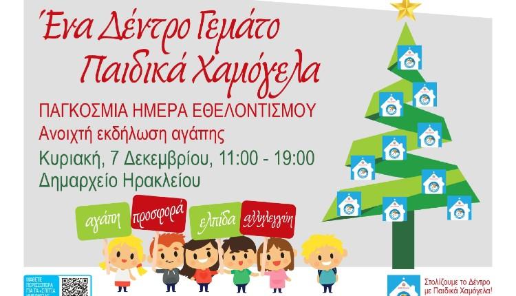 Ο Δήμος Ηρακλείου και η Αντιδημαρχία Εθελοντισμού με αφορμή την Παγκόσμια Ημέρα Εθελοντισμού, στις 5 Δεκεμβρίου, διοργανώνουν ανοικτή εκδήλωση αγάπης με τίτλο «Ένα Δέντρο Γεμάτο Παιδικά Χαμόγελα», την Κυριακή 7 Δεκεμβρίου, 11:00- 19:00 στη Λότζια.