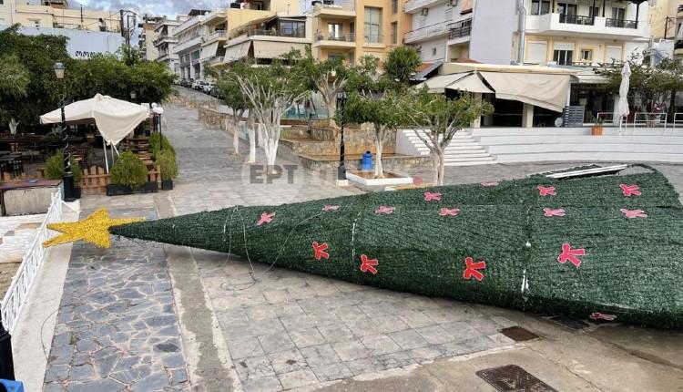 Από τη μανία του Byron δεν γλύτωσε ούτε το χριστουγεννιάτικο δέντρο της πόλης το οποίο είχε εγκατασταθεί στη λίμνη και αύριο είναι προγραμματισμένη η γιορτή όπου θα φωταγωγηθεί.