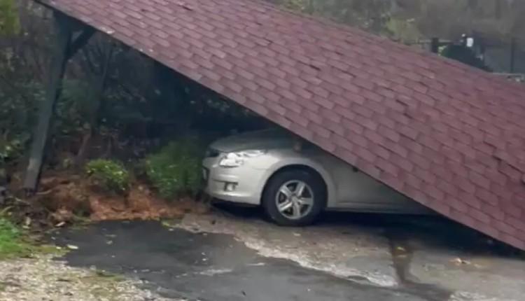 Η συνεχόμενη βροχόπτωση στην πόλη της Φλώρινας ήταν η αιτία κατολίσθησης όγκου χωμάτων από πρανές παρασέρνοντας ένα όχημα μαζί με το κιόσκι που ήταν σταθμευμένο κάτω από αυτό.