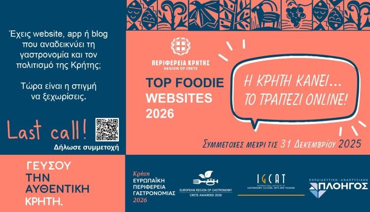Όλες οι πληροφορίες, οι όροι, οι οδηγίες συμμετοχής και η φόρμα υποβολής είναι διαθέσιμες στον σύνδεσμο https://ibo.crete.gov.gr/call-for-top-foodie-websites-2026/