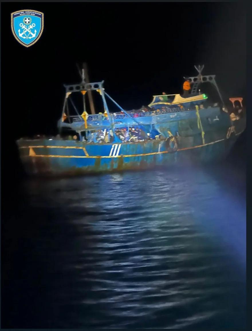 Το αλιευτικό σκάφος με τους 545 επιβαίνοντες εντοπίστηκε 16,5 ναυτικά μίλια νοτιοανατολικά της Γαύδου, με τις εικόνες να καταγράφουν τον συνωστισμό και τις συνθήκες υψηλού κινδύνου για ανθρώπινες ζωές.