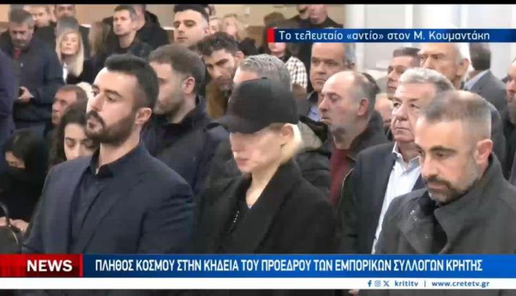 Πλήθος κόσμου από το Ηράκλειο, την Κρήτη και όχι μόνο αποχαιρέτισε σήμερα τον Μανώλη Κουμαντάκη, που έφυγε ξαφνικά από τη ζωή στα 71 του χρόνια. Όσοι τον γνώριζαν και είχαν συνεργαστεί μαζί του, μόνο λόγια σεβασμού και εκτίμησης είχαν να πουν, για την προσωπικότητα και την μαχητικότητά του. Στον Μητροπολιτικό Ναό του Αγίου Μηνά που τελέστηκε η νεκρώσιμος ακολουθία, η οικογένειά του, τα παιδιά του, οι στενοί του φίλοι και συγγενείς, σε κλίμα οδύνης τον αποχαιρέτισαν, μιλώντας για μια μεγάλη απώλεια.
