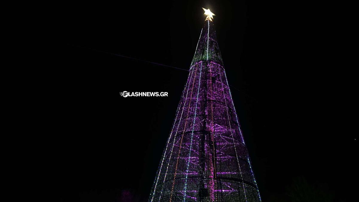 Πρόκειται για το ψηλότερο χριστουγεννιάτικο δέντρο που έχει φωταγωγηθεί ποτέ στην Ελλάδα και, σύμφωνα με τους διοργανωτές, πιθανότατα και σε ολόκληρη την Ευρώπη.