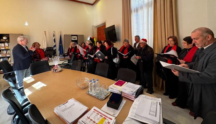 Με πρωτοχρονιάτικες μικρασιάτικες μελωδίες πλημμύρισε η Λότζια από τα κάλαντα που έψαλε στο Δήμαρχο Ηρακλείου Αλέξη Καλοκαιρινό ο Σύλλογος Αλατσατιανών το πρωί της Δευτέρας 22/12 στη Λότζια.