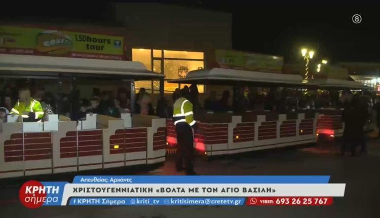 Μία ξεχωριστή δράση από την Τροχαία Ηρακλείου και το Σύλλογο Γονέων & Κηδεμόνων του 2ου Δημοτικού Σχολείου Αρχανών. Ο Άγιος Βασίλης μαζί με το ξωτικό του επισκέφτηκαν τις Αρχάνες και μαζί με τρενάκι, έκαναν βόλτα μικροί και μεγάλοι σα στενά σοκάκια των Αρχανών