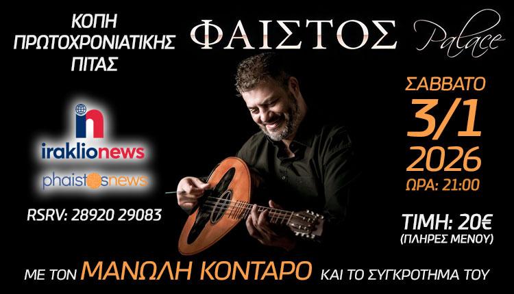 Το iraklionews.gr κόβει την πρωτοχρονιάτικη πίτα του με Μανώλη Κονταρό στο «Φαιστός Palace!»