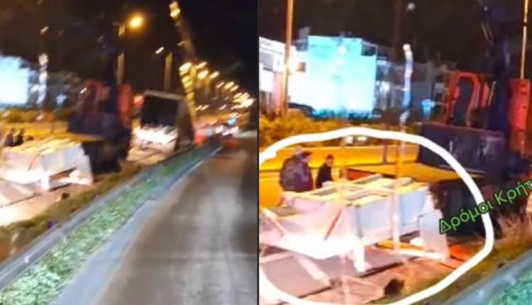 Παραλίγο τραγωδία στο Ηράκλειο: Αποκολλήθηκε πόρτα κοντέινερ και έπεσε στο οδόστρωμα! (video)