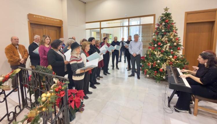 Τα παραδοσιακά κάλαντα της Κρήτης αλλά και της Κεφαλονιάς πλημμύρισαν σήμερα το κτίριο της Περιφέρειας Κρήτης στο Ηράκλειο. Η χορωδία «Ιωνία Αηδών», υπό τη διεύθυνση της μαέστρου Λένας Χατζηγεωργίου, επισκέφθηκε τον Περιφερειάρχη Κρήτης Σταύρο Αρναουτάκη, τηρώντας την καθιερωμένη ετήσια παράδοση της χορωδίας.