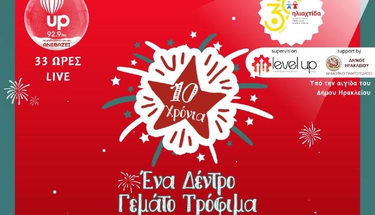 Με απόλυτη επιτυχία ολοκληρώθηκε η φιλανθρωπική δράση «Ένα Δέντρο Γεμάτο Τρόφιμα», που διοργάνωσε για 10η χρονιά ο up 92,9, σε συνεργασία με τον Δήμο Ηρακλείου, στην Πλατεία Ελευθερίας, στο κέντρο της πόλης.