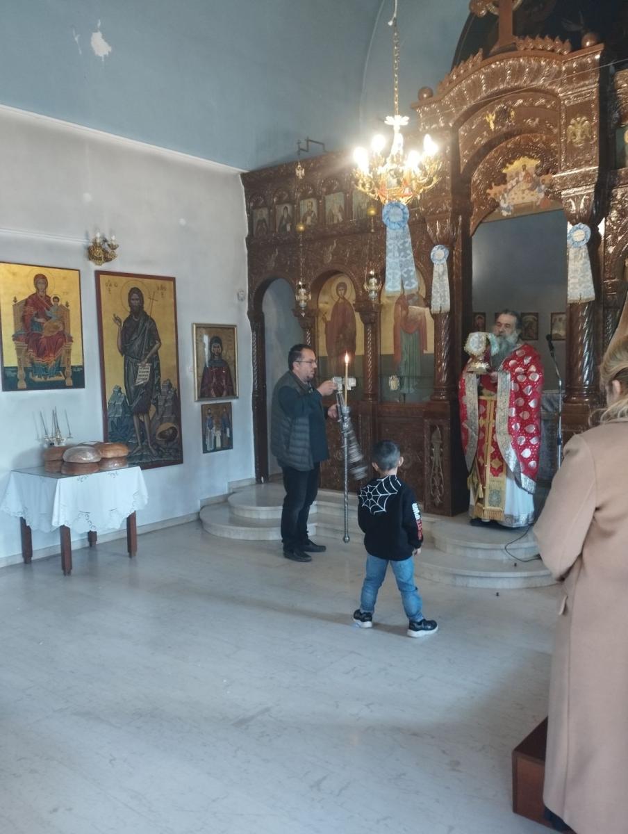 Η Θεία Λειτουργία τελείται με πανηγυρικό χαρακτήρα στον Ιερό Ναό του Αγίου Ιωάννη του Προδρόμου και Βαπτιστή, με τη συμμετοχή περισσοτέρων ιερέων. Στην ακολουθία ιερουργεί ο παπά Μιχάλης Μαραλλιωτάκης, ενώ το «παρών» δίνει και ο παπα Μιχάλης Αλμπαντάκης από τον Ζαρό, προσδίδοντας ακόμη μεγαλύτερη λαμπρότητα στον εορτασμό.