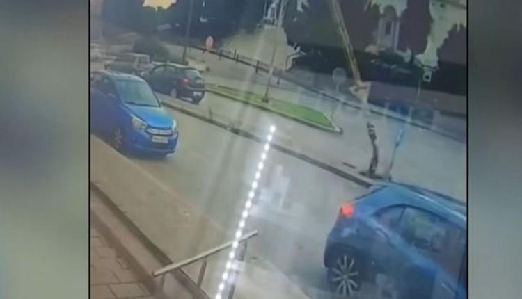 Στιγμές τρόμου για οδηγό όταν κολώνα φωτισμού κατέπεσε στο όχημά του εν κινήσει (video)