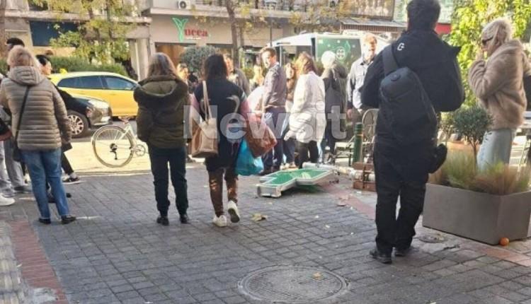 Όλα έγιναν, όταν για άγνωστη μέχρι στιγμής αιτία, η ταμπέλα με τον σταυρό έξω από το φαρμακείο έφυγε από τη θέση της και έπεσε στο έδαφος χτυπώντας μια γυναίκα που περνούσε από το σημείο στη συμβολή των οδών Χανίων και Πατησίων.