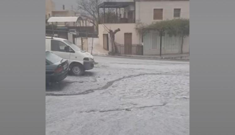 Χαλάζι «σκέπασε» δρόμους στο Ηράκλειο!