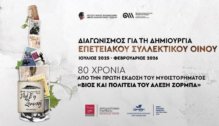 Μια χρονιά – ορόσημο για το Μουσείο «Νίκου Καζαντζάκη» είναι το 2026 καθώς συμπληρώνονται ογδόντα χρόνια από την έκδοση του εμβληματικού μυθιστορήματος «Βίος και πολιτεία του Αλέξη Ζορμπά». Το 2026 όμως είναι και μια χρονιά δημιουργίας και εξωστρέφειας για την Γαστρονομία της Κρήτης! Στο πλαίσιο αυτό, Μουσείο και Περιφέρεια συμπράττουν σε μια δράση ξεχωριστή που κορυφώνεται στις 24 Ιανουαρίου με την τυφλή γευσιγνωσία για την επιλογή του συλλεκτικού-επετειακού οίνου «Βίος και πολιτεία του Αλέξη Ζορμπά».