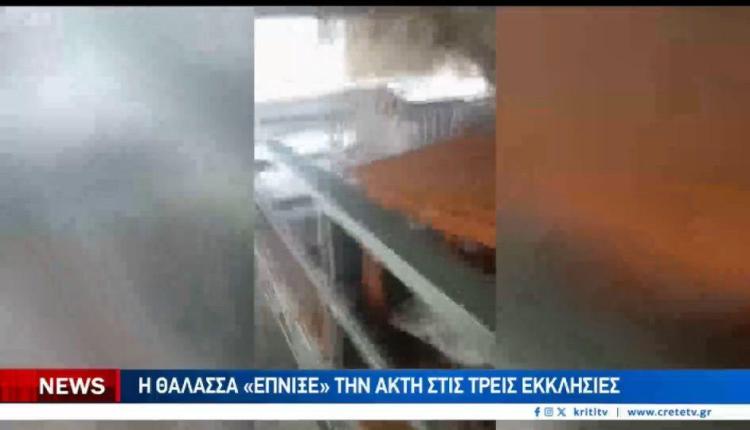 Εικόνες βιβλικής καταστροφής αντικρίζουν από το πρωί οι κάτοικοι στις Τρεις Εκκλησιές στα νότια του νομού Ηρακλείου. Η κακοκαιρία που σαρώνει το νησί μετέτρεψε τον παραθαλάσσιο οικισμό σε λιμνοθάλασσα, με τα κύματα να μπαίνουν κυριολεκτικά μέσα στα σπίτια και τα καταστήματα. Αντίστοιχα προβλήματα καταγράφηκαν και στην Ιεράπετρα, όπου η φουρτουνιασμένη θάλασσα σκέπασε την παραλιακή ζώνη, βύθισε τραπεζοκαθίσματα στην άμμο, και προκάλεσε ζημιές σε επιχειρήσεις, με τη Δημοτική Αστυνομία να ρυθμίζει την κυκλοφορία.