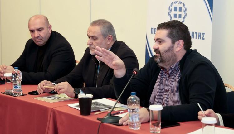 Στη σύσκεψη συμμετείχαν οι Αντιπεριφερειάρχες: Επιχειρηματικότητας Μιχάλης Βάμβουκας, Κοινωνικής Πολιτικής και Αλληλεγγύης Στέλιος Βοργιάς, Περιβάλλοντος Νίκος Ξυλούρης.