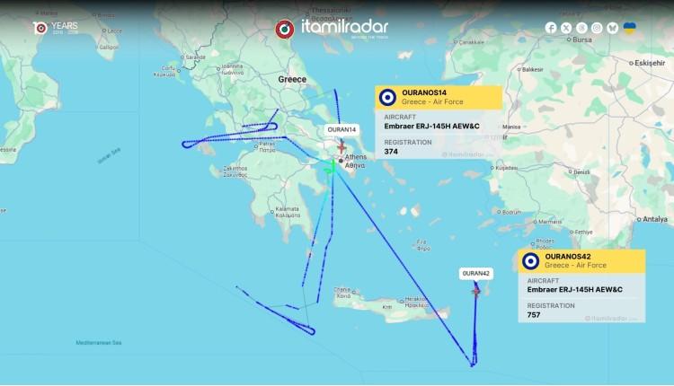 Η έντονη κινητικότητα των αεροσκαφών AEW&C της Ελληνικής Πολεμικής Αεροπορίας το πρωί της Δευτέρας αποτυπώνει μια σύνθετη επιχειρησιακή εικόνα, με τα διαθέσιμα μέσα να αναλαμβάνουν ταυτόχρονα διαφορετικού χαρακτήρα αποστολές σε τρία διακριτά γεωγραφικά πεδία.