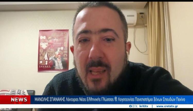 Από τα σοκάκια της Βιάννου στις λεωφόρους του Πεκίνου. Ένας Κρητικός καθηγητής καταρρίπτει τα σύνορα και διδάσκει στους Κινέζους όχι μόνο τη γλώσσα μας, αλλά και το πώς να χορεύουν τον Σιγανό. Ο Μανώλης Σπανάκης, πρεσβευτής του πολιτισμού μας στην Κίνα, μιλά στην ΚΡΗΤΗ TV για τη ζωή στο Πεκίνο, όσα του λείπουν από την πατρίδα αλλά και όσα του ζητούν με λαχτάρα οι φοιτητές του να τους μάθει. Ο Σιγανός και ο Χανιώτης έγιναν τα αγαπημένα τους βήματα, ενώ μια συγκεκριμένη λέξη έχει κλέψει τις καρδιές τους.