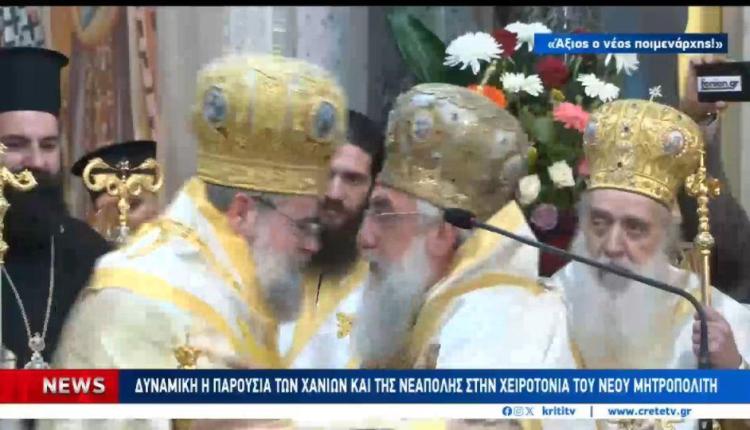 Σε κλίμα βαθιάς συγκίνησης και πνευματικής φόρτισης, τελέστηκε στο Ηράκλειο η χειροτονία του νέου Μητροπολίτη Κυδωνίας και Αποκορώνου Τίτου. «Δεν καλούμαι να κυβερνήσω, αλλά να διακονήσω», ο λόγος του νέου Μητροπολίτη Τίτου στον κατάμεστο από κόσμο Άγιο Μηνά, όπου έδωσαν το παρόν δήμαρχοι και εκπρόσωποι φορέων. Άξιος φώναξαν πιστοί από κάθε γωνιά της Κρήτης, κυρίως από Χανιά και Νεάπολη, δίνοντας ισχυρό παρών σε μια από τις σημαντικότερες στιγμές για την Εκκλησία της Κρήτης, εκφράζοντας τη στήριξή τους στο νέο τους ποιμενάρχη.