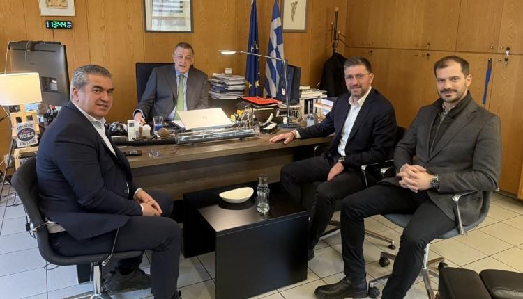 Συνάντηση εργασίας στο πλαίσιο των σταθερών διεκδικήσεων του Δήμου Μαλεβιζίου για τη νέα χάραξη των αστικών περιοχών του Βόρειου Οδικού Άξονα Κρήτης (ΒΟΑΚ), και ειδικότερα για το κρίσιμο τμήμα Ηράκλειο–Γάζι, πραγματοποιήθηκε μεταξύ του Δημάρχου Μαλεβιζίου, Μενέλαου Μποκέα, του Αντιδημάρχου Τεχνικών Έργων, Γιάννη Μαρή, του Υφυπουργού Υποδομών και Μεταφορών, Νίκου Ταχιάου, και του Γενικού Γραμματέα Υποδομών, Δημήτρη Αναγνώπουλου.