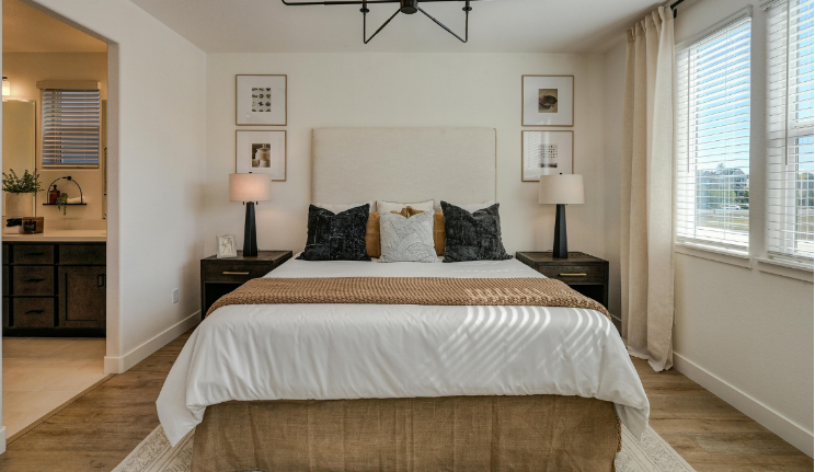 - Παίξε με το χρώμα:Αν το δωμάτιο είναι μικρό, κινήσου σε ανοιχτόχρωμες παλέτες (όπως μπεζ, γκρι ανοιχτό ή λευκό). Έτσι, το κρεβάτι θα «δέσει» αρμονικά με τον χώρο και δεν θα κυριαρχεί εις βάρος της υπόλοιπης διακόσμησης.