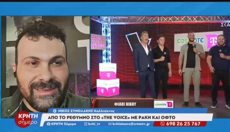 Ο Ρεθυμνιώτης, Νίκος Συνολάκης που ξεσήκωσε το "THE VOICE" με ρακή και οφτό Lifestyle iraklionews.gr 16/02/2026 23:15 Share it! FacebookTwitter Ο Ρεθυμνιώτης, Νίκος Συνολάκης που ξεσήκωσε το "THE VOICE" με ρακή και οφτό Ακολουθήστε το Iraklionews σε Google News και Facebook The VoiceΝίκος Συνολάκης Share it! FacebookTwitter